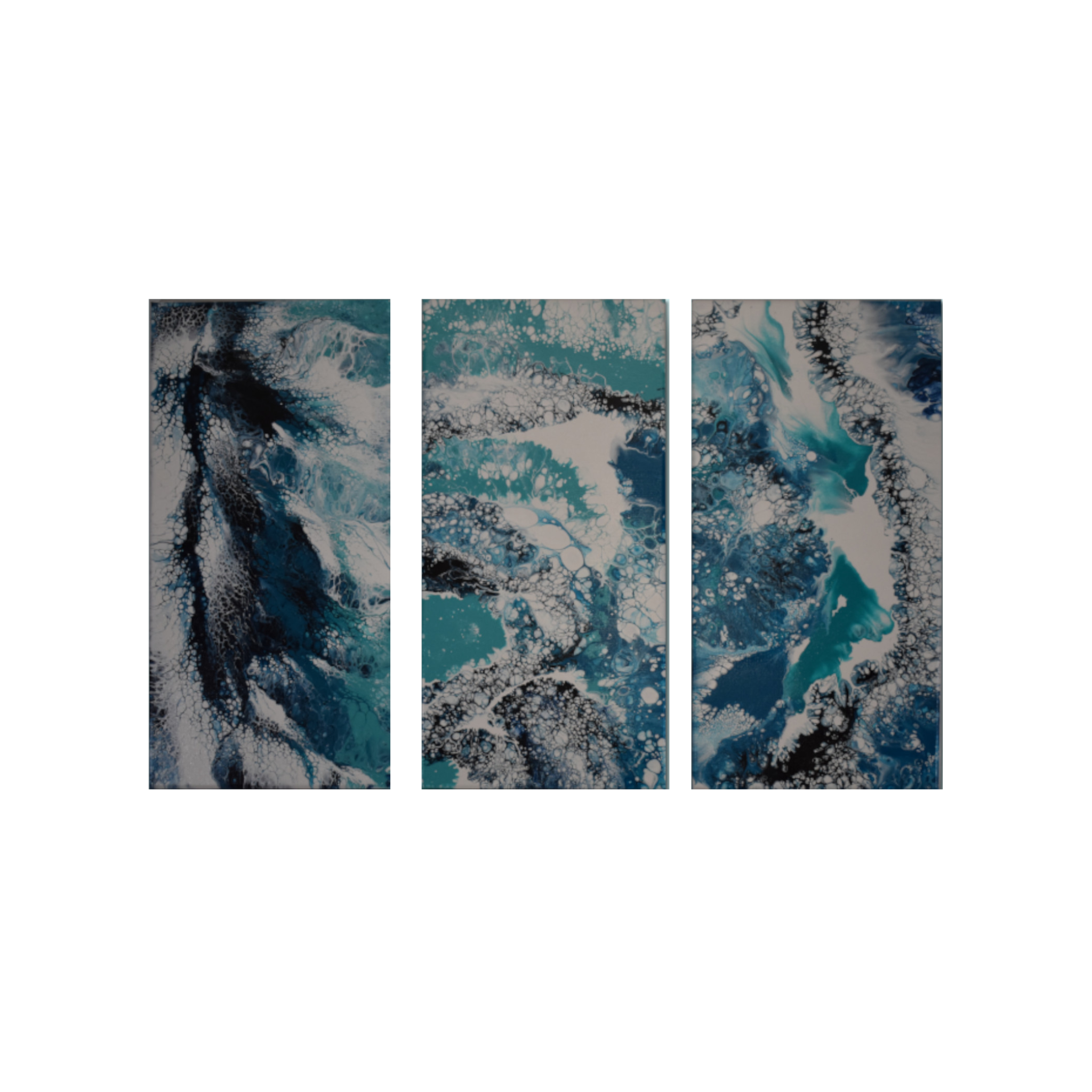 Color blends: Titanium White with Indigo, Turquoise, and Teal create depth and rhythm.