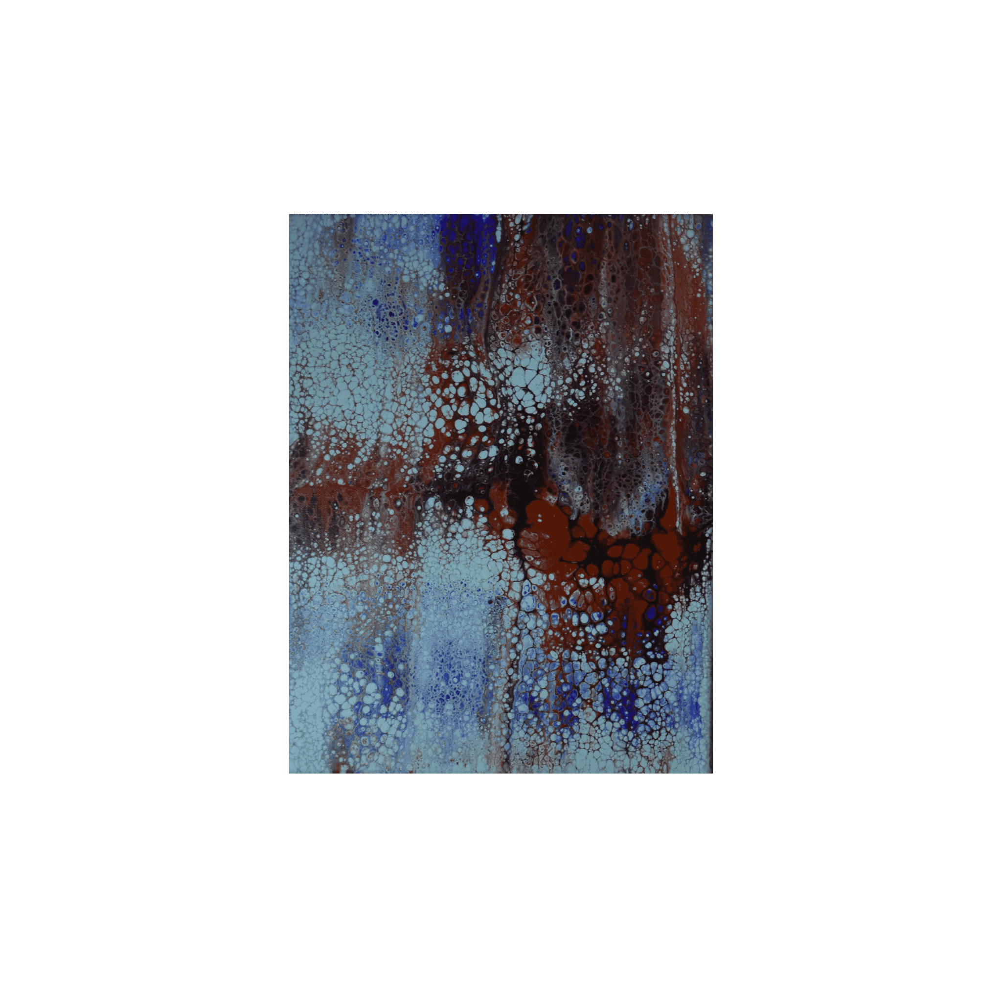 Technique: Swipe. The paint was poured onto a base layer of pale blue paint, and then the design was created by swiping wet paper on the canvas.