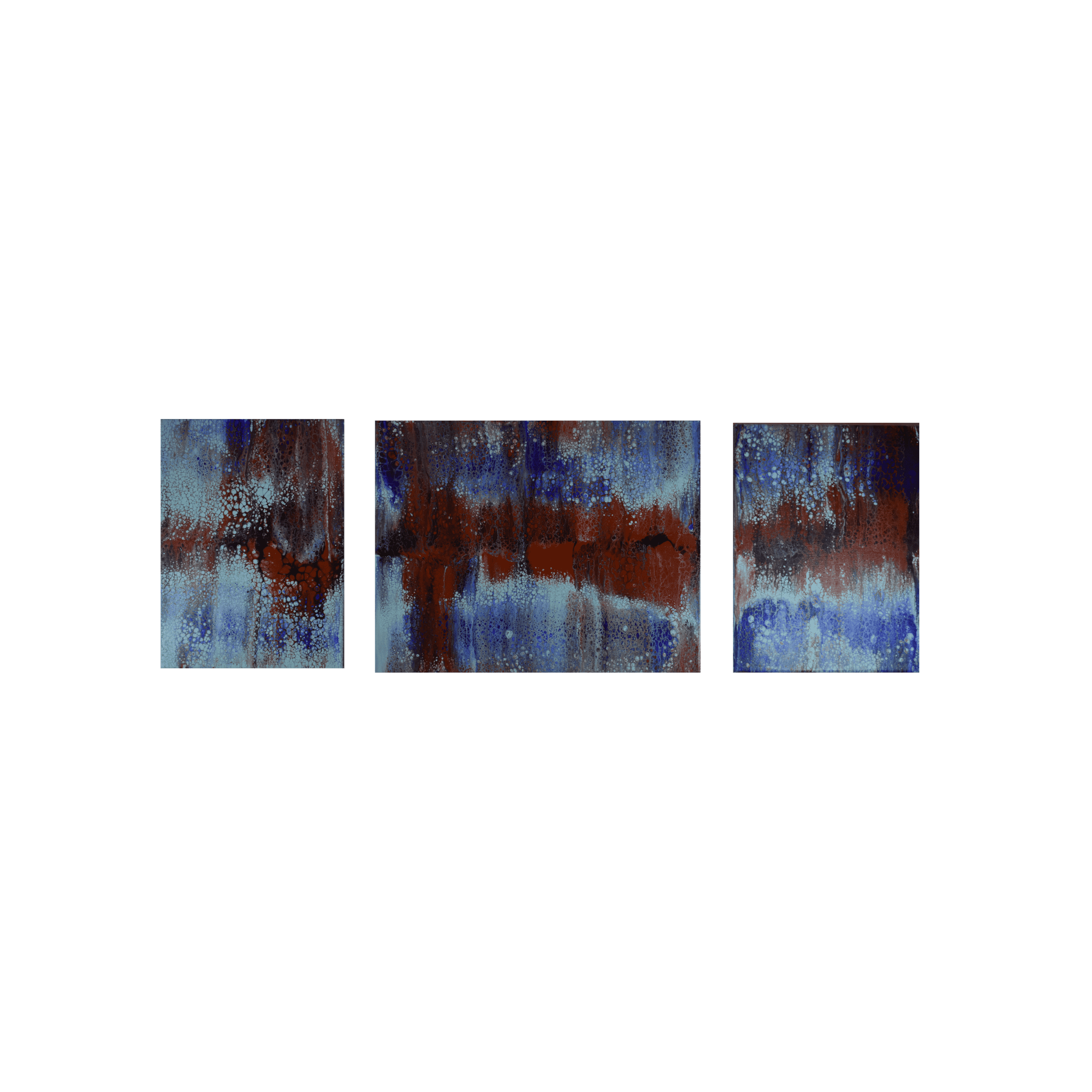 Shapes: Shapes of cellular patterns resembling bubbles flow throughout the three-piece panel.