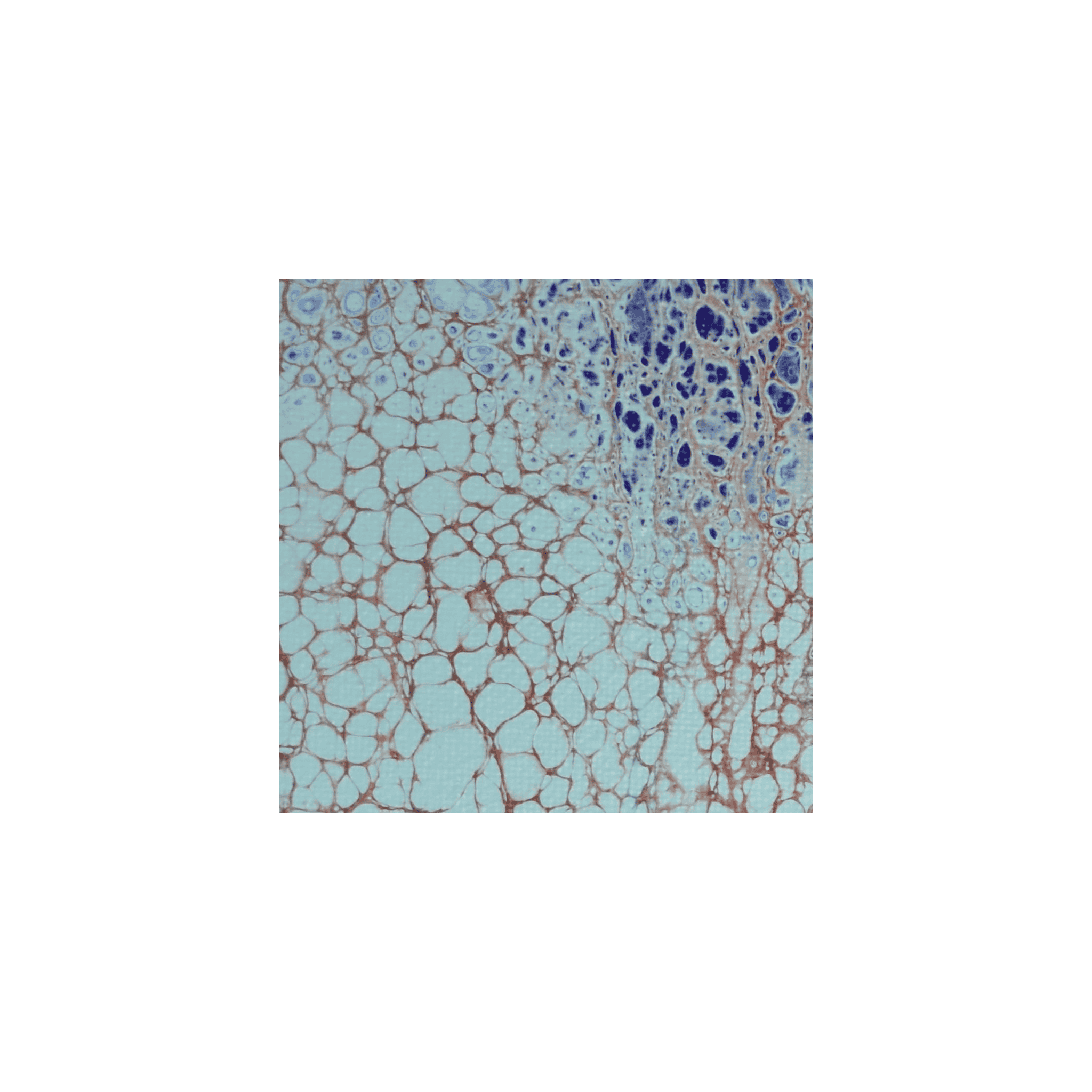 Formations: Lacing or delicate web-like patterns were formed when the paint was moved across the canvas with air.
