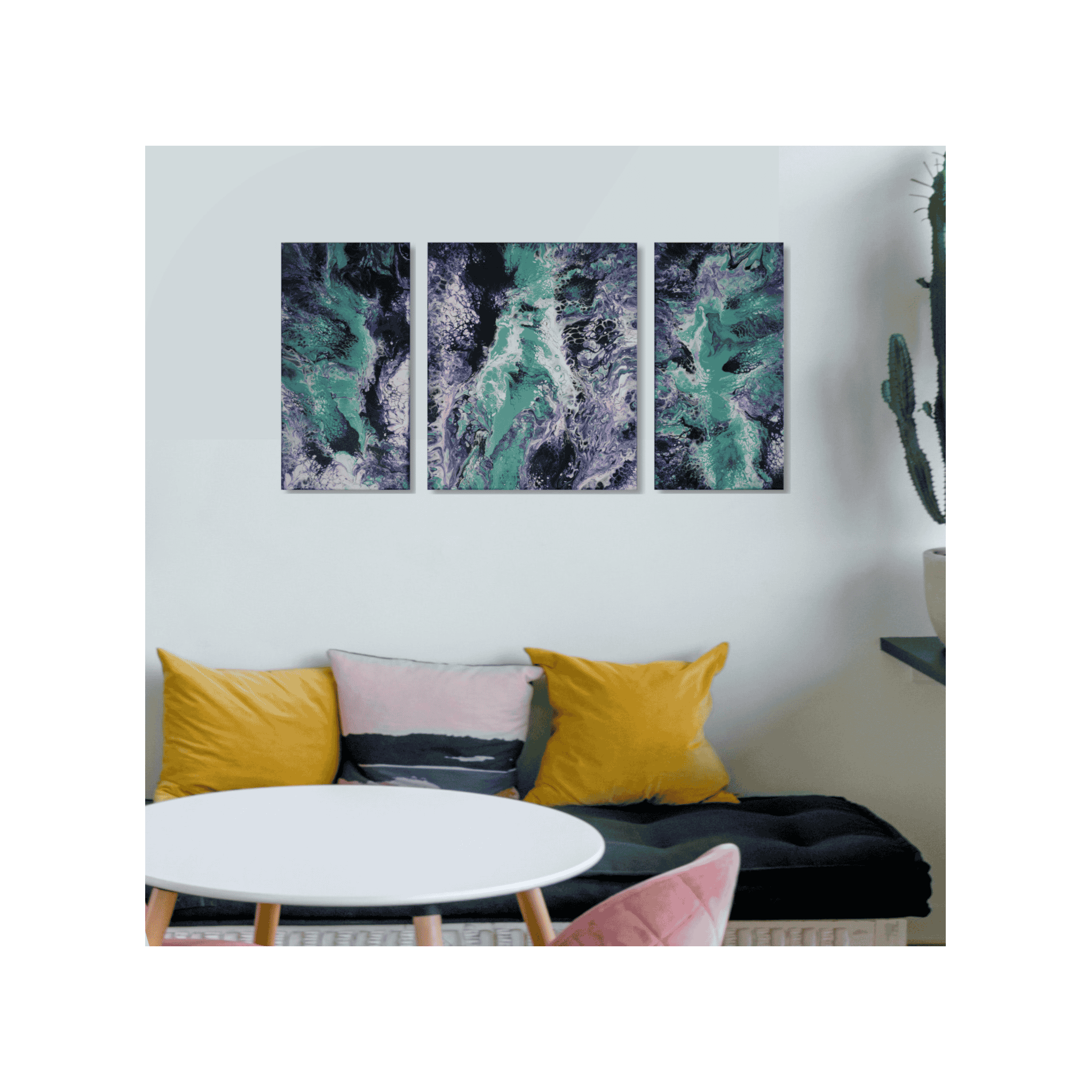 Perfect for interiors, this acrylic pour adds a splash of color and movement.