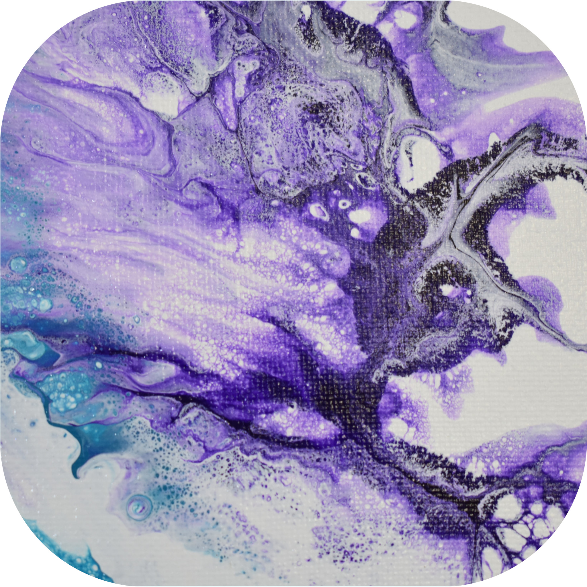 Technique: Dutch Pour. The paint was poured onto a base layer of white paint, and then the design was created using a hairdryer.