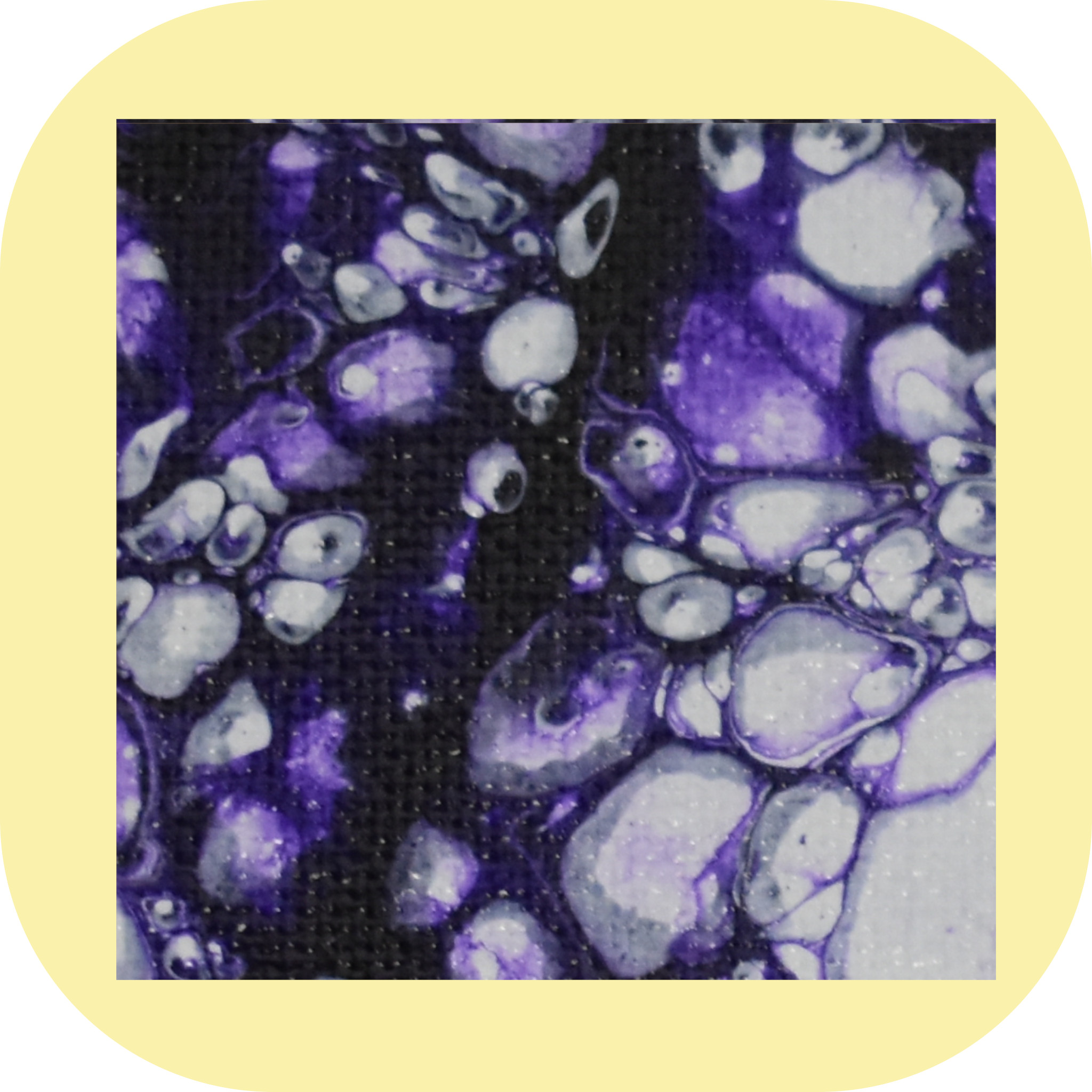 Technique: Dutch Pour. The paint was poured onto a base layer of white paint, and then the design was created using a hairdryer.